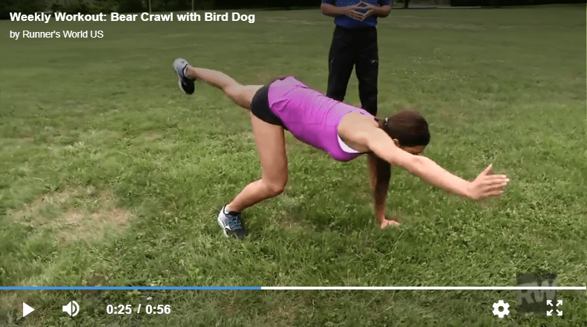 (Group size: individual) https://www.runnersworld.com/training/a20810575/weekly-workout-bear-crawl-with-bird-dog/ Clients crawl around randomly on all fours:-) PT command; forwards, backwards, bird dog (lift arm and opposite leg) 🐻🦸🏽