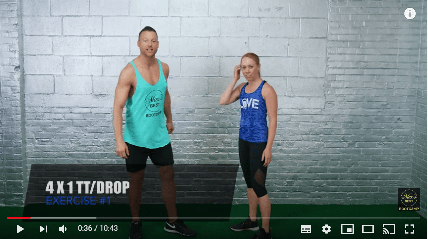 (Group size: pairs) https://youtu.be/3K6XGxO8jhw?t=355 pairs facing away from each other in push up or plank position, how many times can tap feet…in 1 min. Upgrade to also lifting opposite hand 🦶🏼🦶🏾